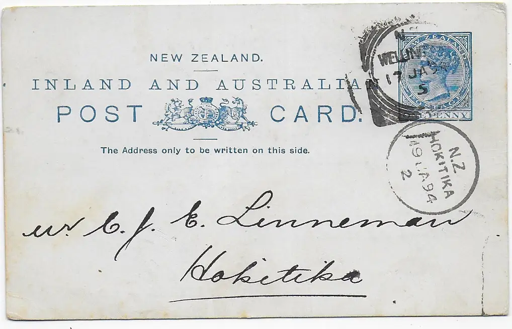 Carte promotionnelle de Wellington vers Hokitika 1894