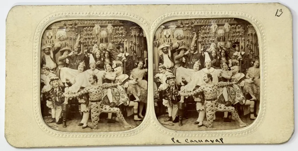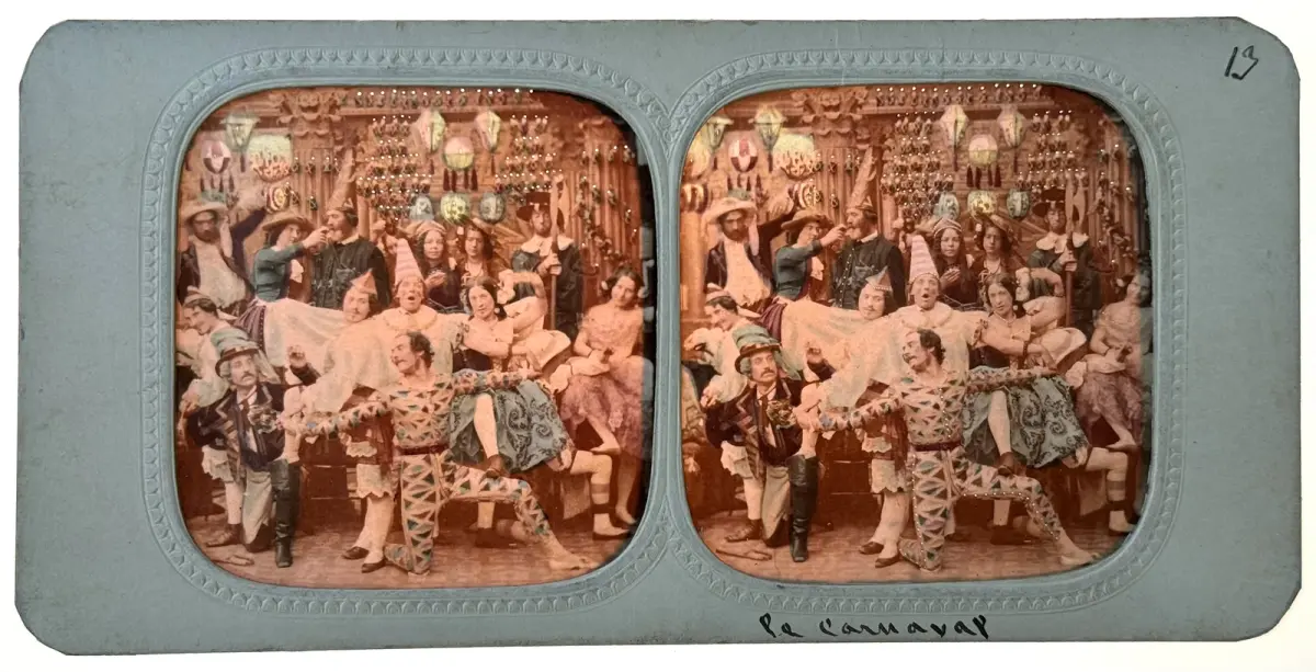 Les vues stéréoscopiques "french tissues" sont appelées ainsi parce qu'une fine feuille de soie colorée est insérée à l'arrière du tirage albuminé permettant de voir la vue en couleur en la regardant à la lumière.