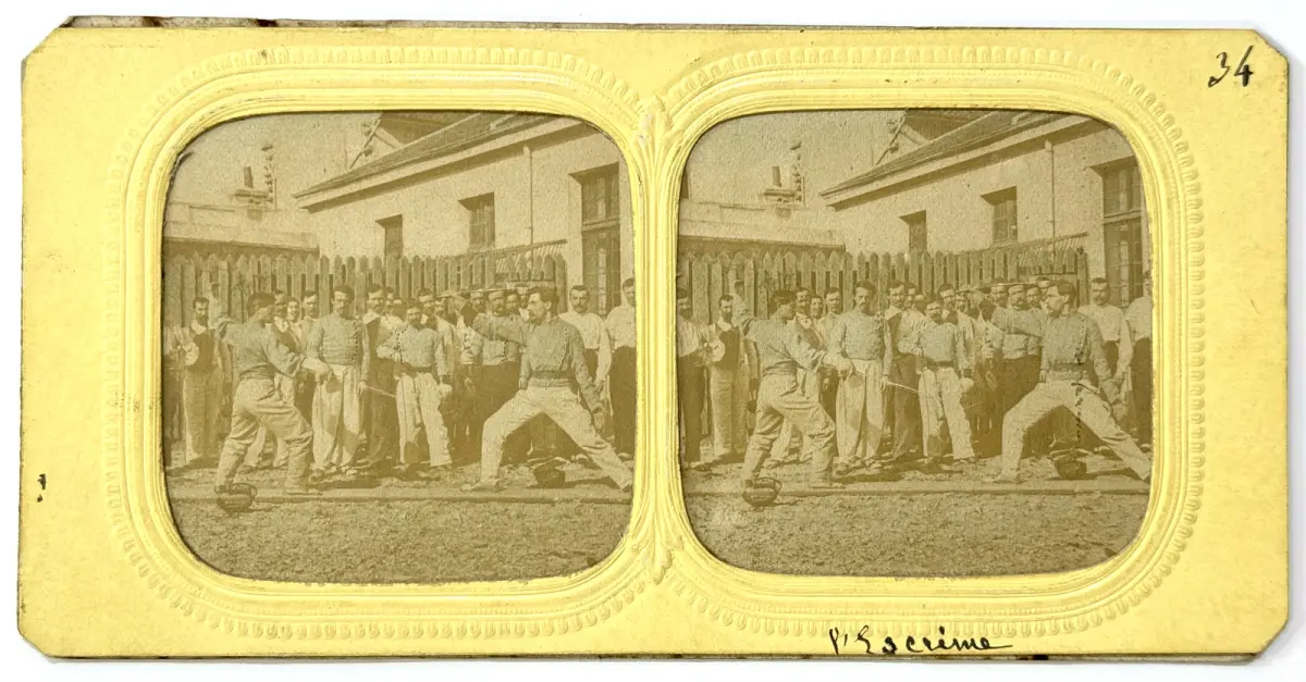 Les vues stéréoscopiques "french tissues" sont appelées ainsi parce qu'une fine feuille de soie colorée est insérée à l'arrière du tirage albuminé permettant de voir la vue en couleur en la regardant à la lumière.