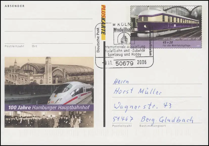 Carte supplémentaire PSo 94 Hamburger Hauptbahnhof & Modelbranch Messe Essen, FDC ESSt Cologne