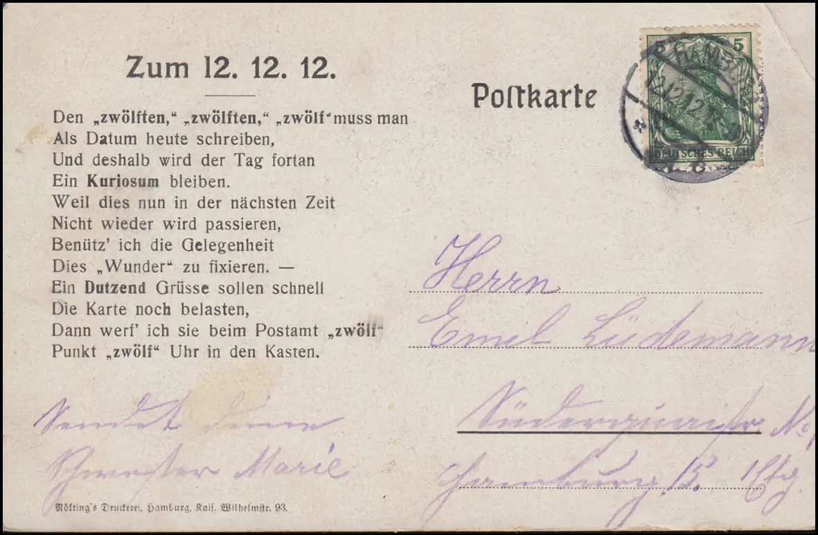 Carte visuelle Au 12.12.12, HAMBURG Bureau de poste 12-12.12.12: 12-1 N
