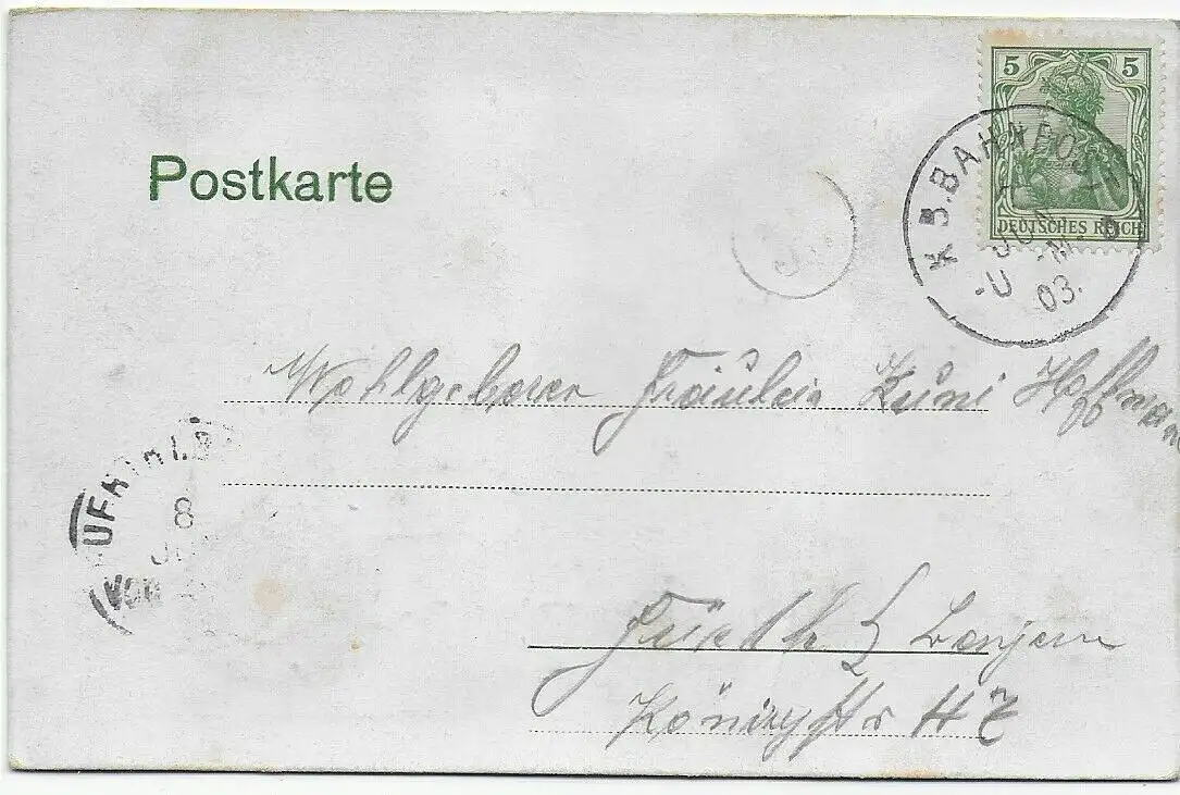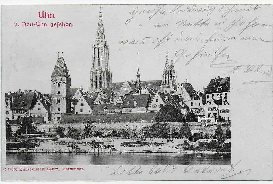 Carte vue Ulm de Neu Ulme, 1903 Bahnpost vers Fürth