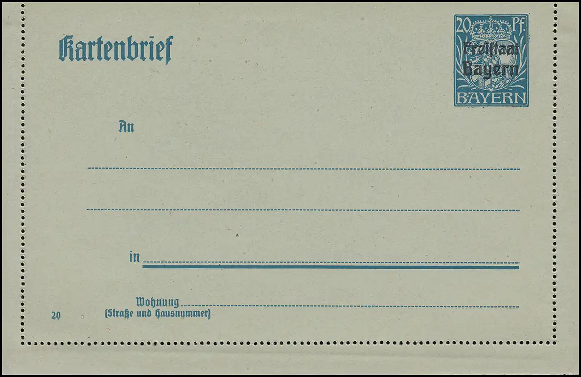 Cartes de Bavière K 11/02 Freistaat 20 Pf avec DV 20, comme dépensé **