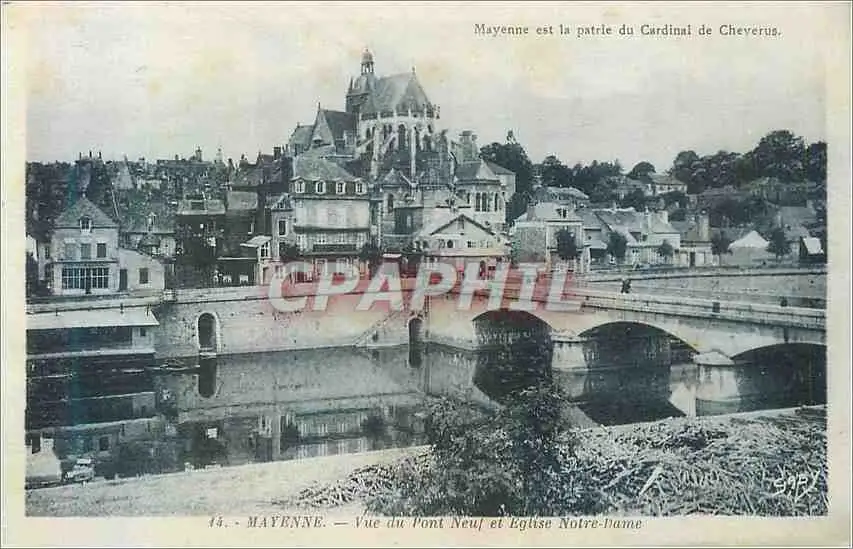Cartes postales 14 mayenne vue du pont neuf et eglise notre dame