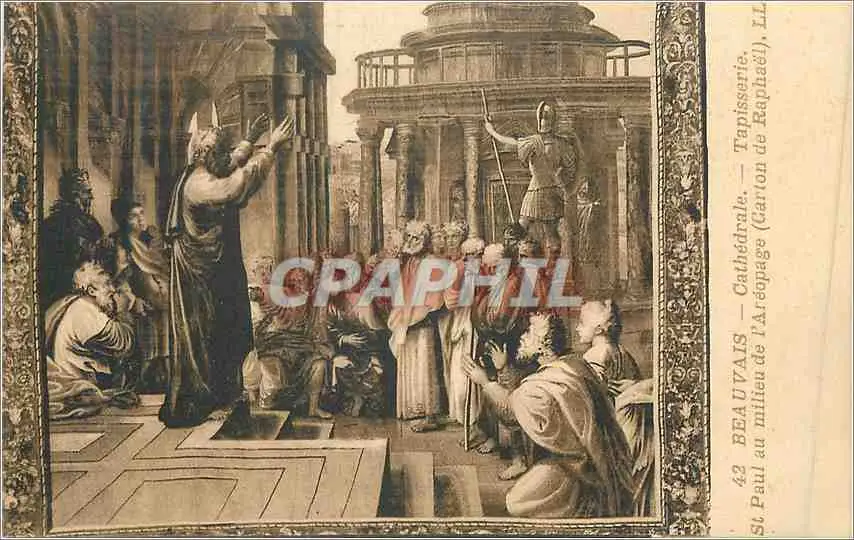 Cartes postales 42 beauvais cathedrale tapisserie st paul au milieu de la areopage(gaston de raphael)