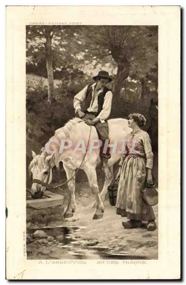Cartes postales A l&#39abreuvoir Debat Cheval