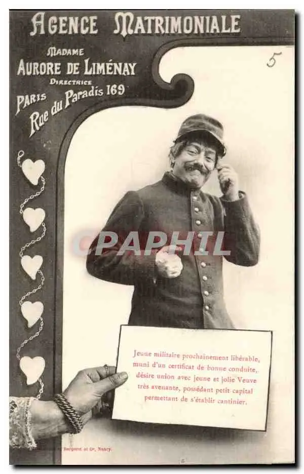 Cartes postales Agence matrimoniale Mme Aurore de Limenay Rue du Paradis 169 TOP (cartomancie voyance voyant car