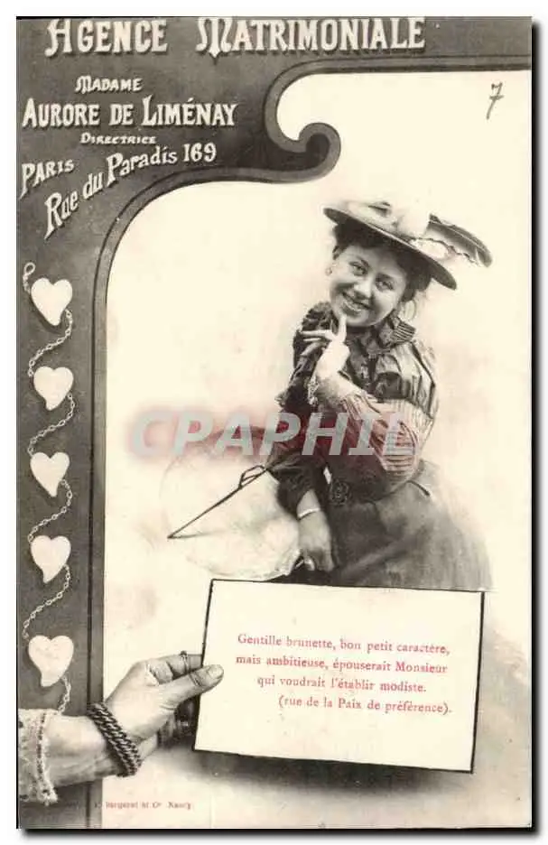 Cartes postales Agence matrimoniale Mme Aurore de Limenay Rue du Paradis 169 TOP (cartomancie voyance voyant car