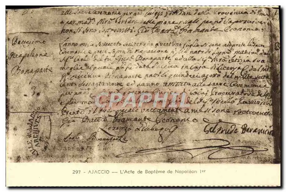 Cartes postales Ajaccio L&#39Acte De Bapteme De Napoleon 1er