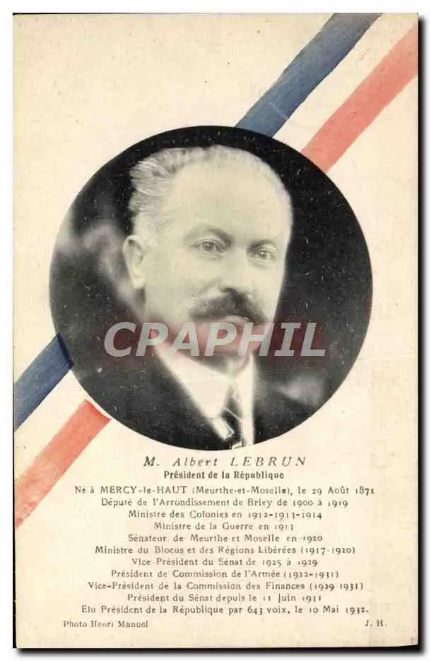 Cartes postales Albert Lebrun President de la Republique