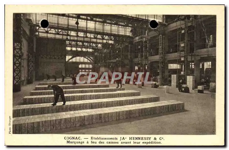 Cartes postales Alcool Cognac Etablissements Hennesy Marquage a feu des caisses avant leur expedition