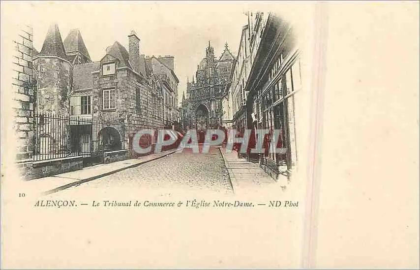 Cartes postales Alencon Le Tribunal de Commerce et l'Eglise Notre Dame (carte 1900)