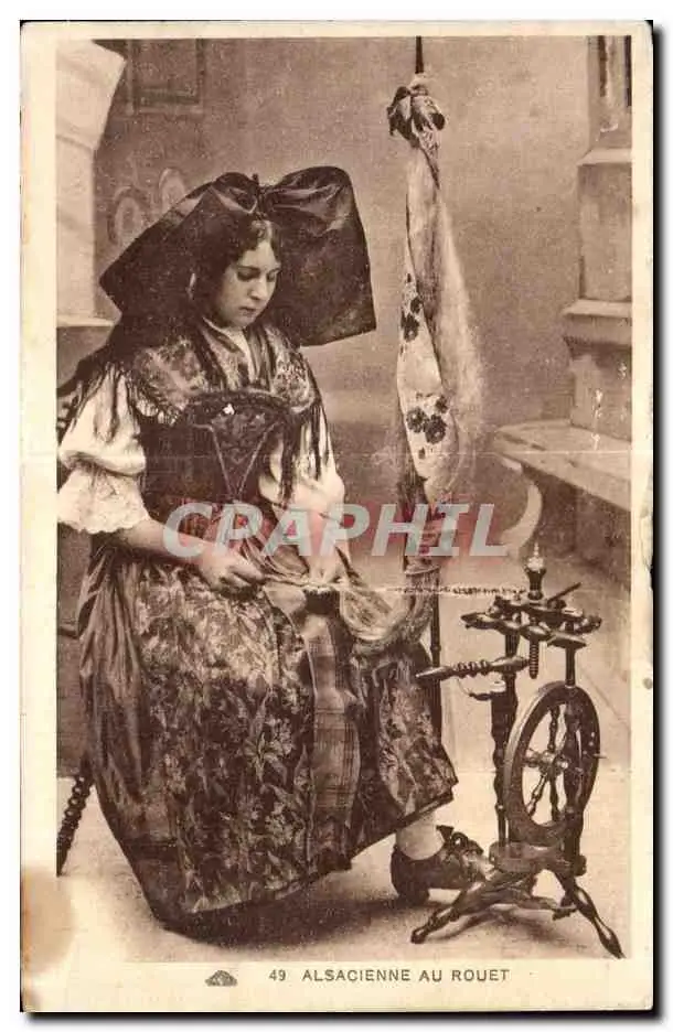 Cartes postales Alsacienne Au Rouet Folklore Costume