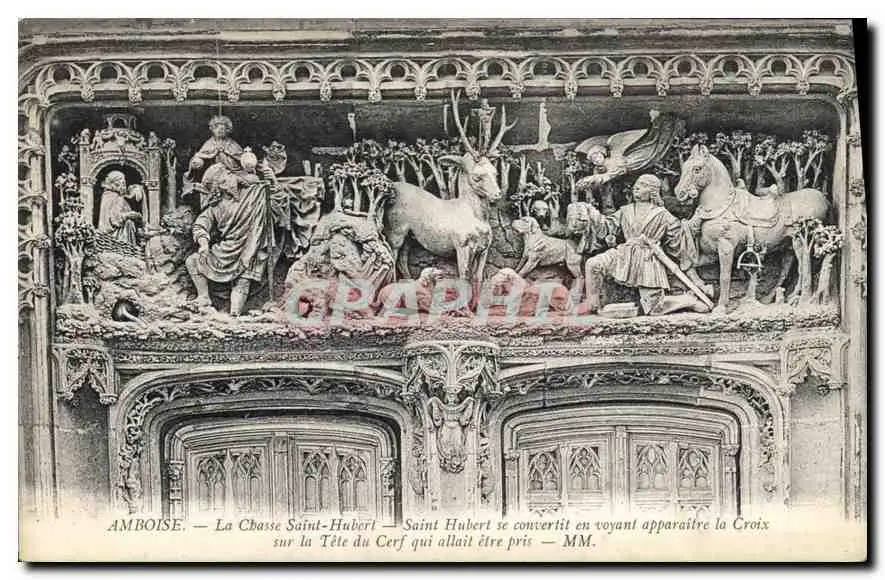 Cartes postales Amboise La Chasse Saint Hubert Saint Hubert se convertit en voyant apparaitre la Croix sur la Te