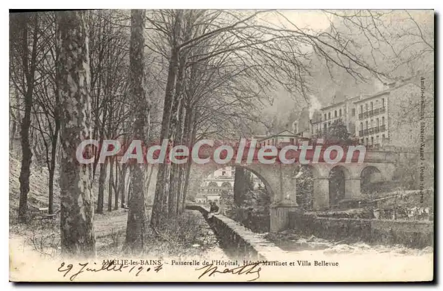 CPA Amelie Les BAINS Passerelle De I'Hopital h�tel Martinet Villa Bellevue