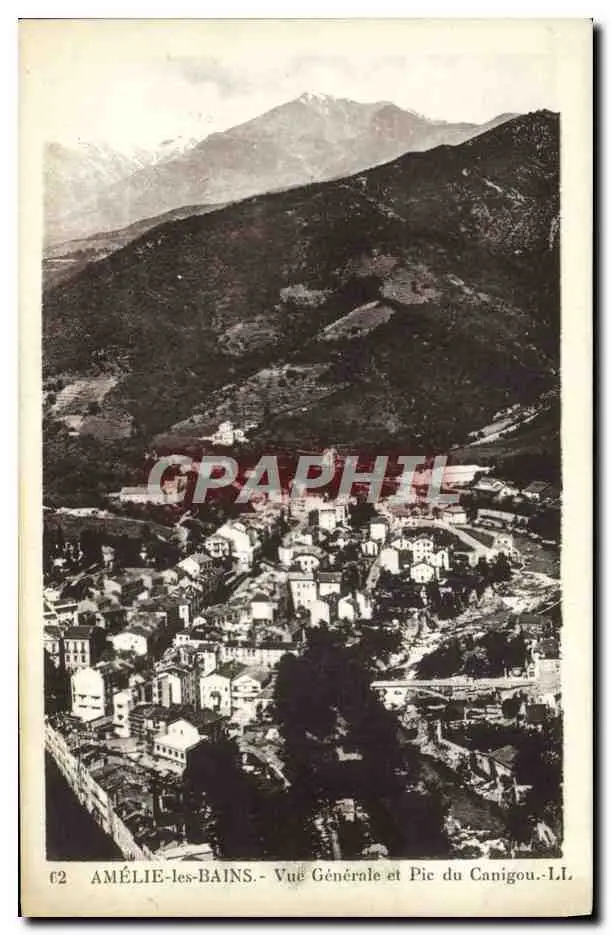 Cartes postales Amelie les Bains Vue generale et le pic du Canigou