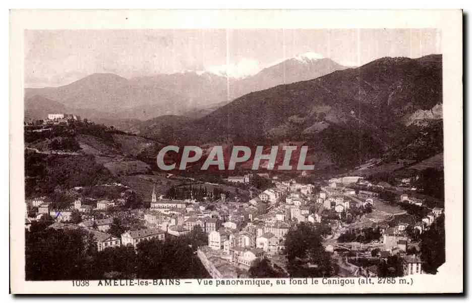 Cartes postales Amelie les Bains Vue panoramique su fond le Canigou