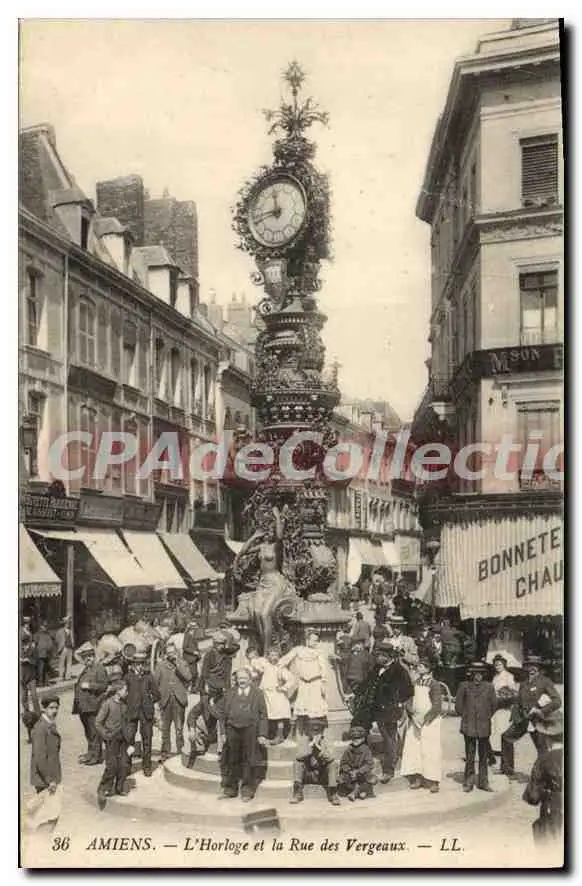 Cartes postales Amiens L'Horloge et la Rue des Vergeaux