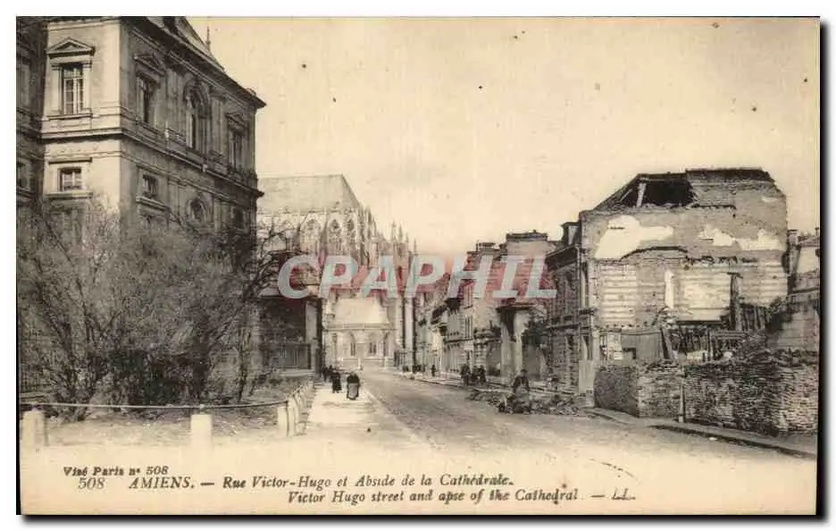 Cartes postales Amisns Rue Victor Hugo et Abside de la Cathedrale Militaria