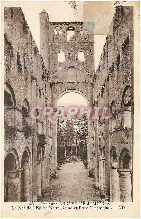 Cartes postales Ancienne Abbaye de Jumieges la Nef de l'Eglise Notre Dame et l'Arc Triomphal