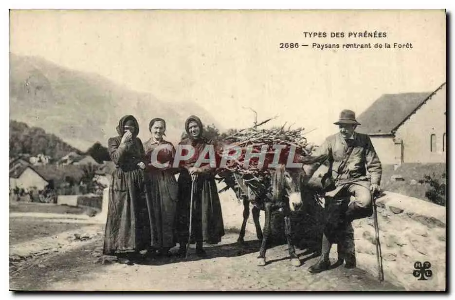 Cartes postales Ane Mule Pyrenees Paysans rentrant de la foret