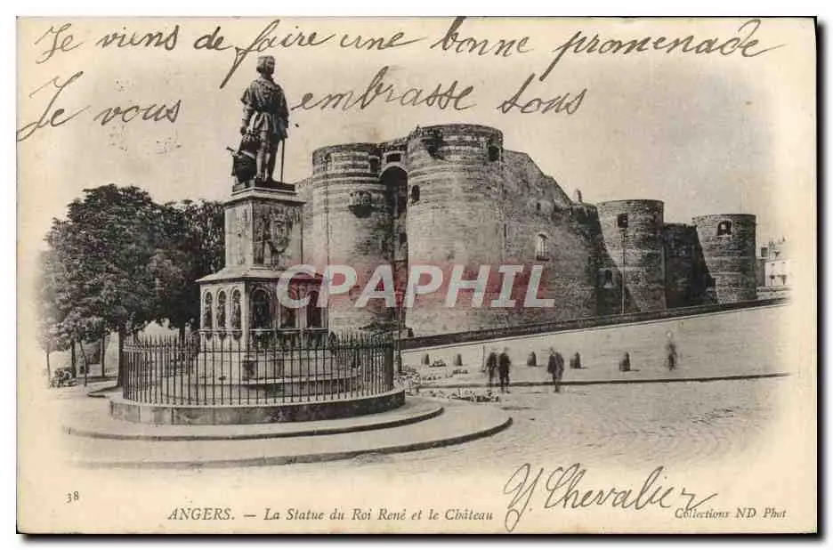 Cartes postales Angers La Statue Du Roi Rene et le chateau