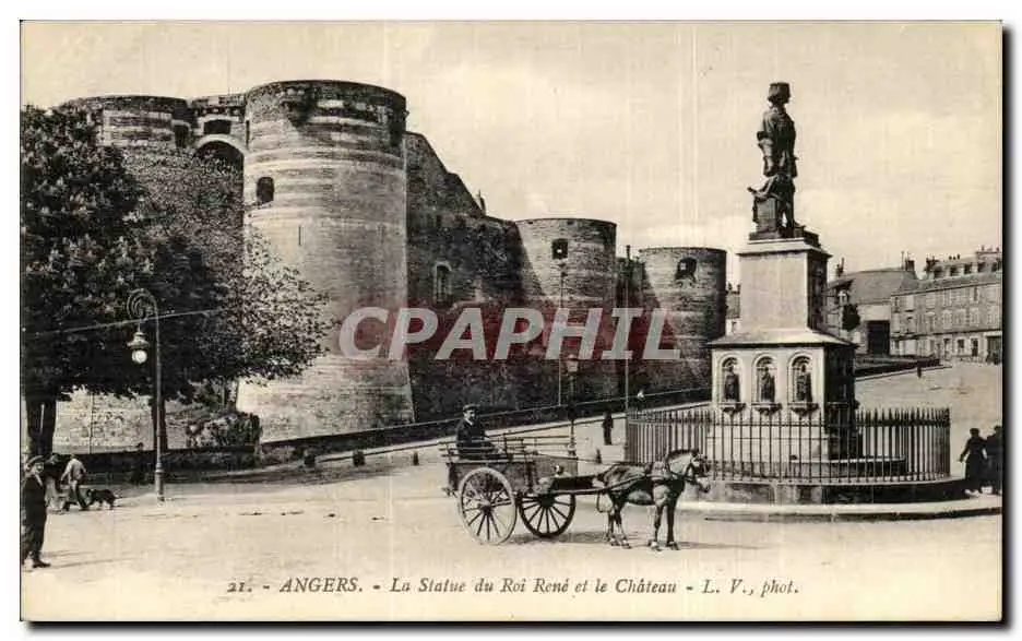Cartes postales Angers La statue du roi Renet ele chateau ( attelage de cheval )