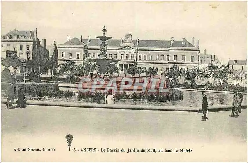 Cartes postales Angers Le Bassin du Jardin du Mail au fond la Mairie