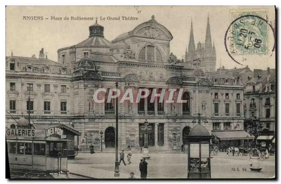 Cartes postales Angers Place du ralliement Le grand Theatre Tramway