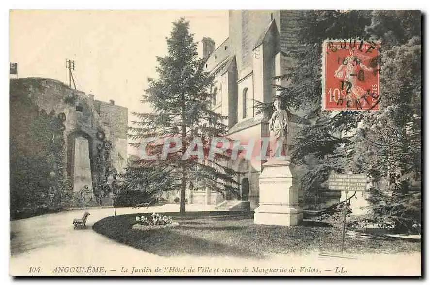 Cartes postales Angouleme Le Jardin de l'Hotel de Ville et statue de Marguerite de Valois