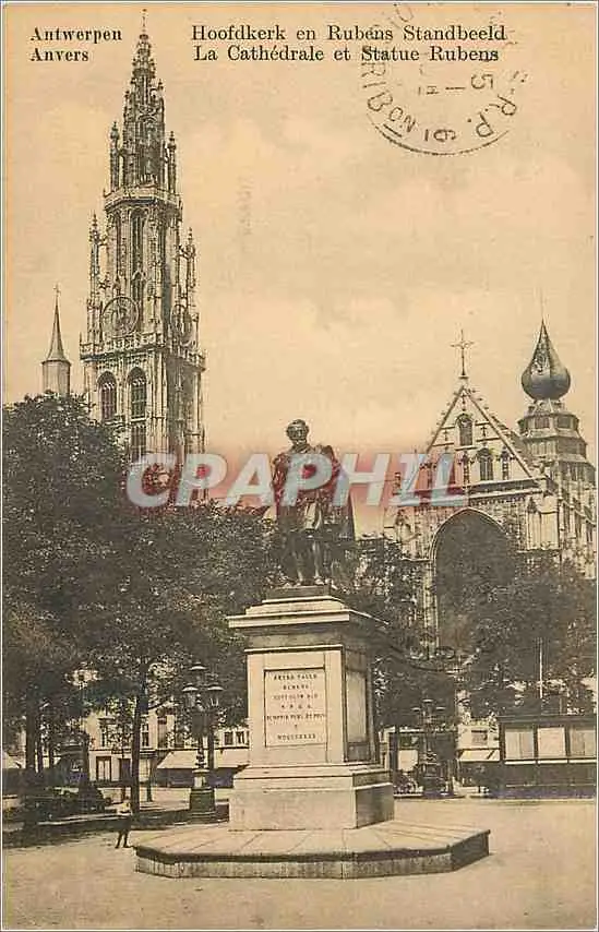 Cartes postales Antwerpen Anvers la Cathedrale et Statue Rubens