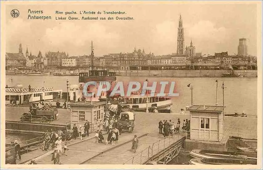Cartes postales Anvers Rive gauche. L'Arriv�e du Transbordeur Bateau