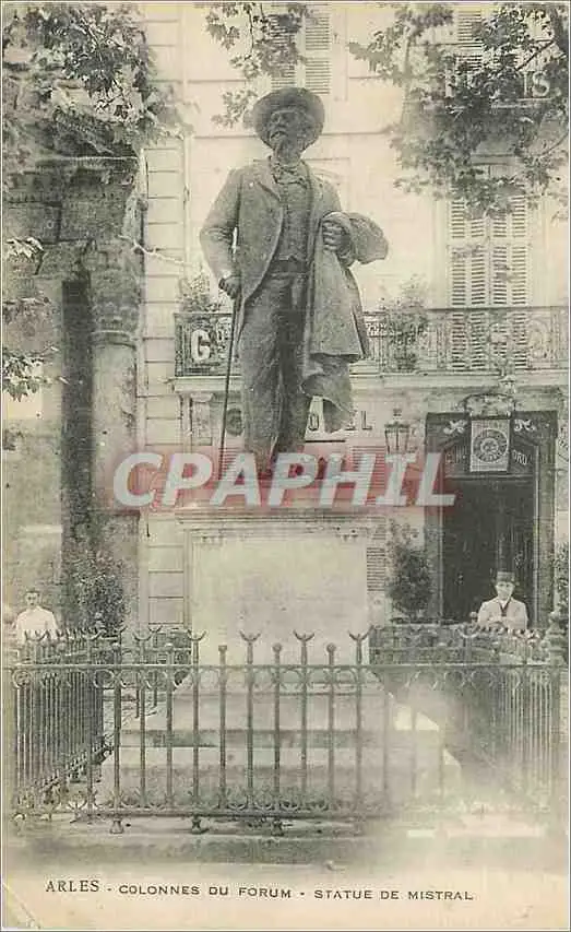 Cartes postales Arles Colonnes du Forum Statue de Mistral