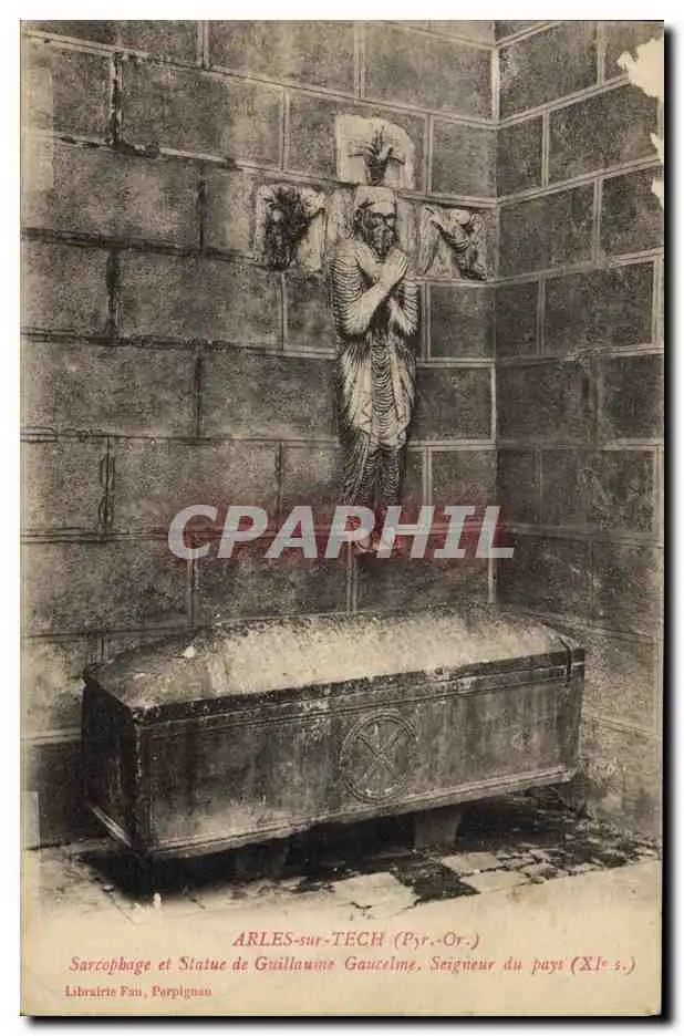 Cartes postales Arles sur Tech Sarcophage et statue de Guillaume Gaucelme