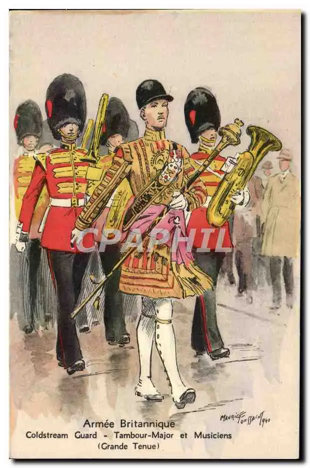 Cartes postales Armee britannique anglaise Militaria Coldstream Guard Tambour major et musiciens Gradne tenue