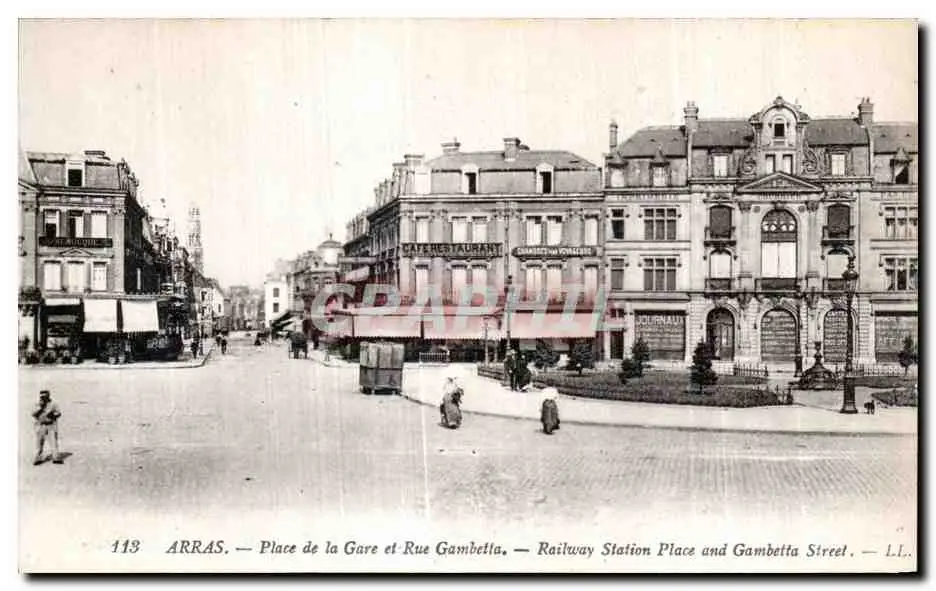 Cartes postales Arras Place de la Gare et Rue Gambetta