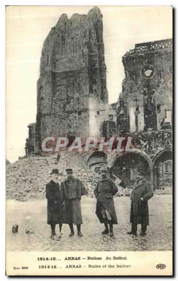 Cartes postales Arras Ruines du Beffroi Militaria