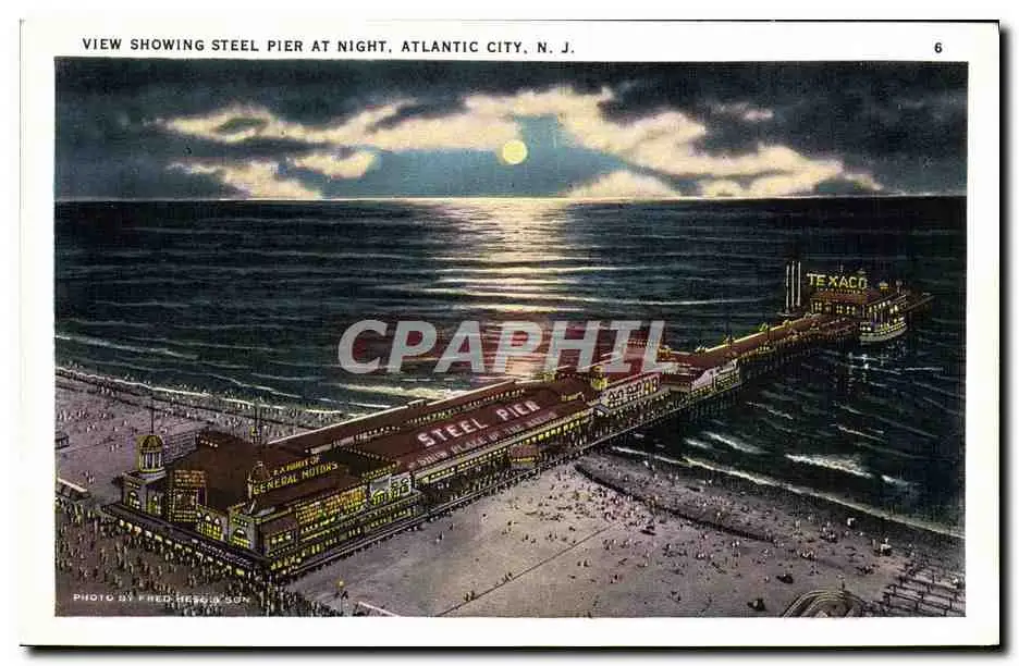 Cartes postales Atlantic City View Showing Steel Pier At Night Texaco