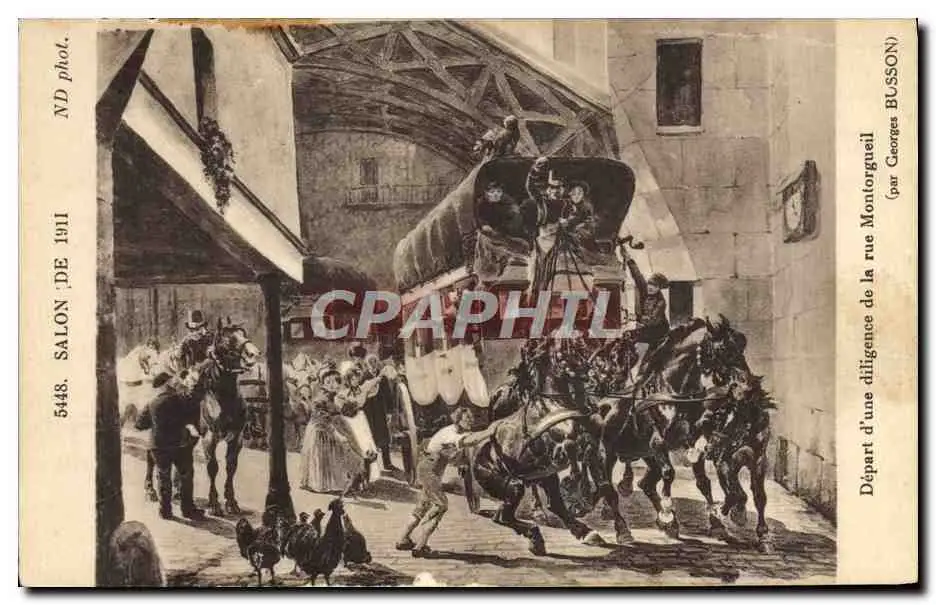 Cartes postales Attelage Salon de 1911 Depart d&#39une diligence de la rue Montorgueil Paris
