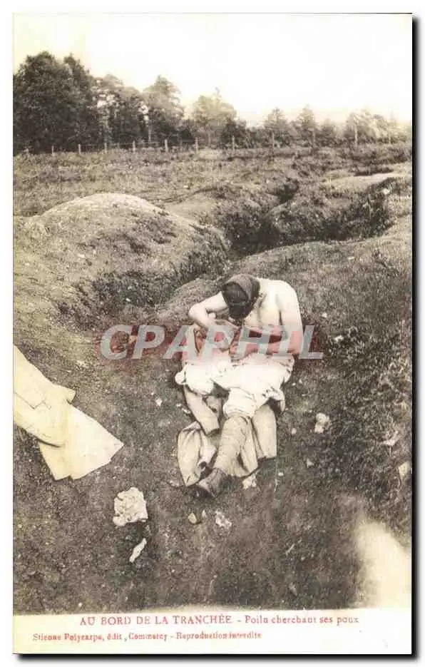 Cartes postales Au Bord De La Tranchee poilu Cherchant ses poux Militaria