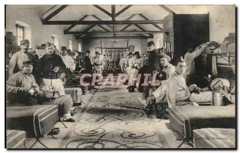 Cartes postales Au camp de Chalons Interieur d une chambree Militaria