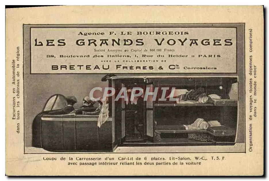 Cartes postales Automobile Agence F Le Bourgeois Les grands voyages Breteau Freres Coupe de la carrosserue d&#39
