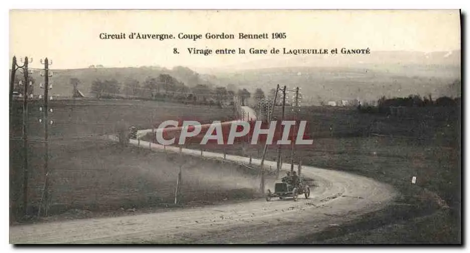 Cartes postales Automobile Circuit d'Auvergne Coupe Gordon Bennett 1905 Virage entre la gare de Laqueuille et