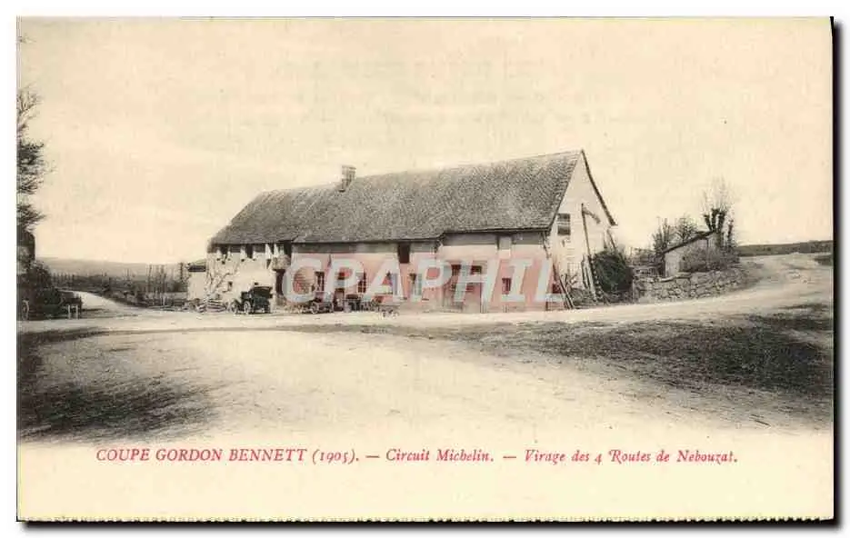 Cartes postales Automobile Circuit d'Auvergne coupe gordon Bennett 1905 Circuit Michelin Virage des 4 routes