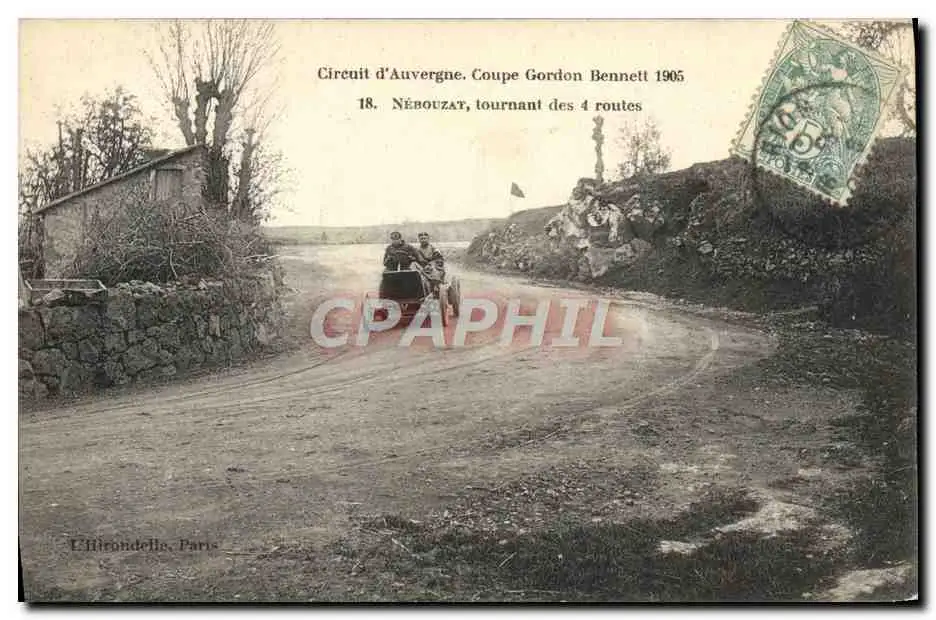 Cartes postales Automobile Circuit d'Auvergne coupe gordon Bennett 1905 Nebouzat tournant des 4 routes