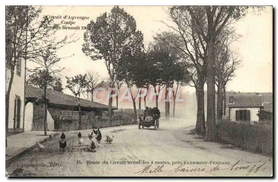 Cartes postales Automobile Circuit d&#39Auvergne coupe gordon Bennett 1905 Route du circuit avant les 4 routes p