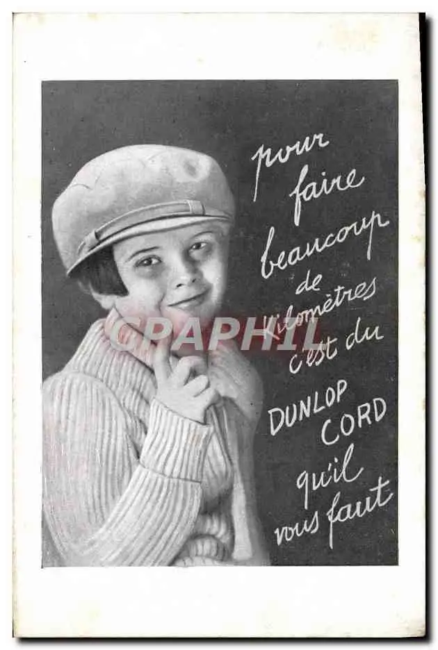 Cartes postales Automobile Enfant Publicite Dunlop Cord