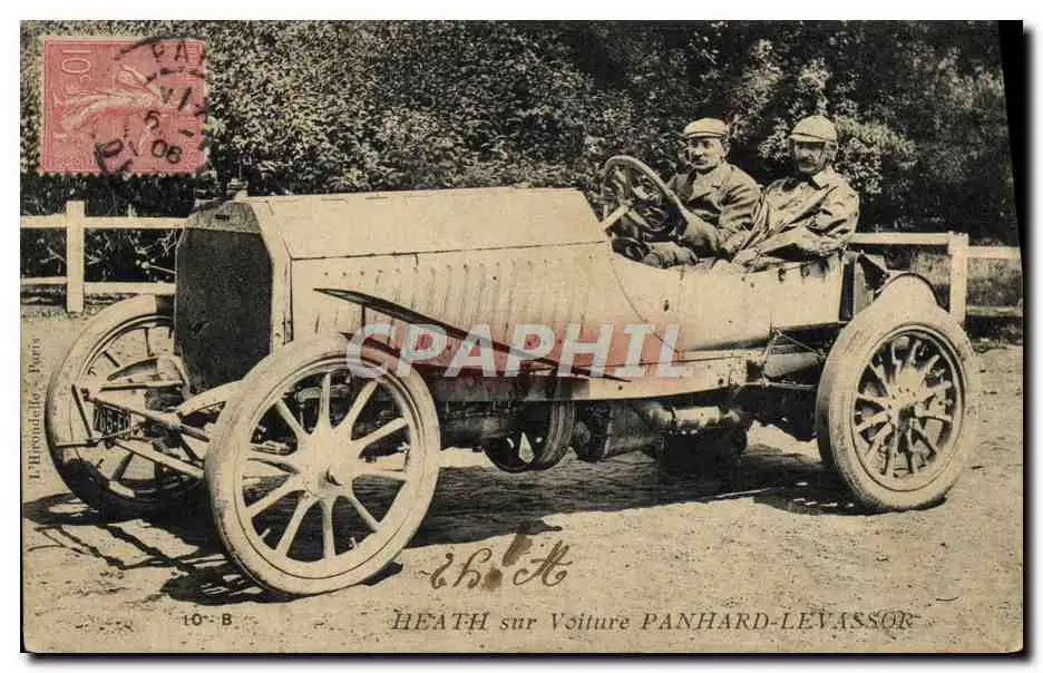 Cartes postales Automobile Heath sur sa voiture Panhard Levassor