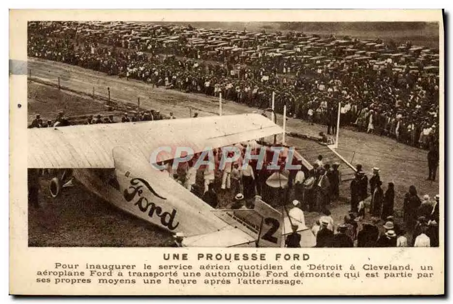 Cartes postales Automobile Une prouesse Ford Detroit Cleveland Avion