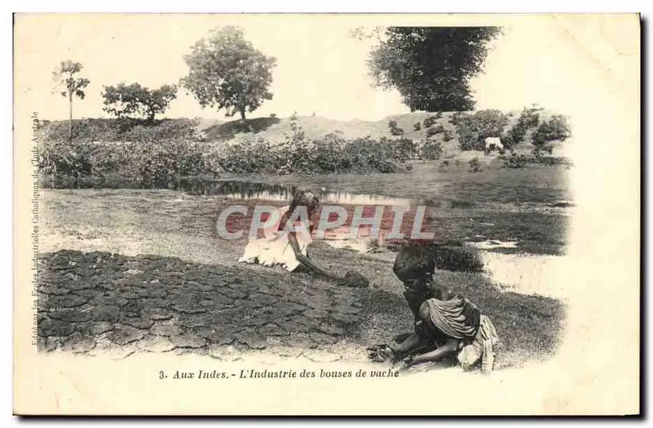 Cartes postales Aux Indes l&#39industrie des bouses de vache Enfants